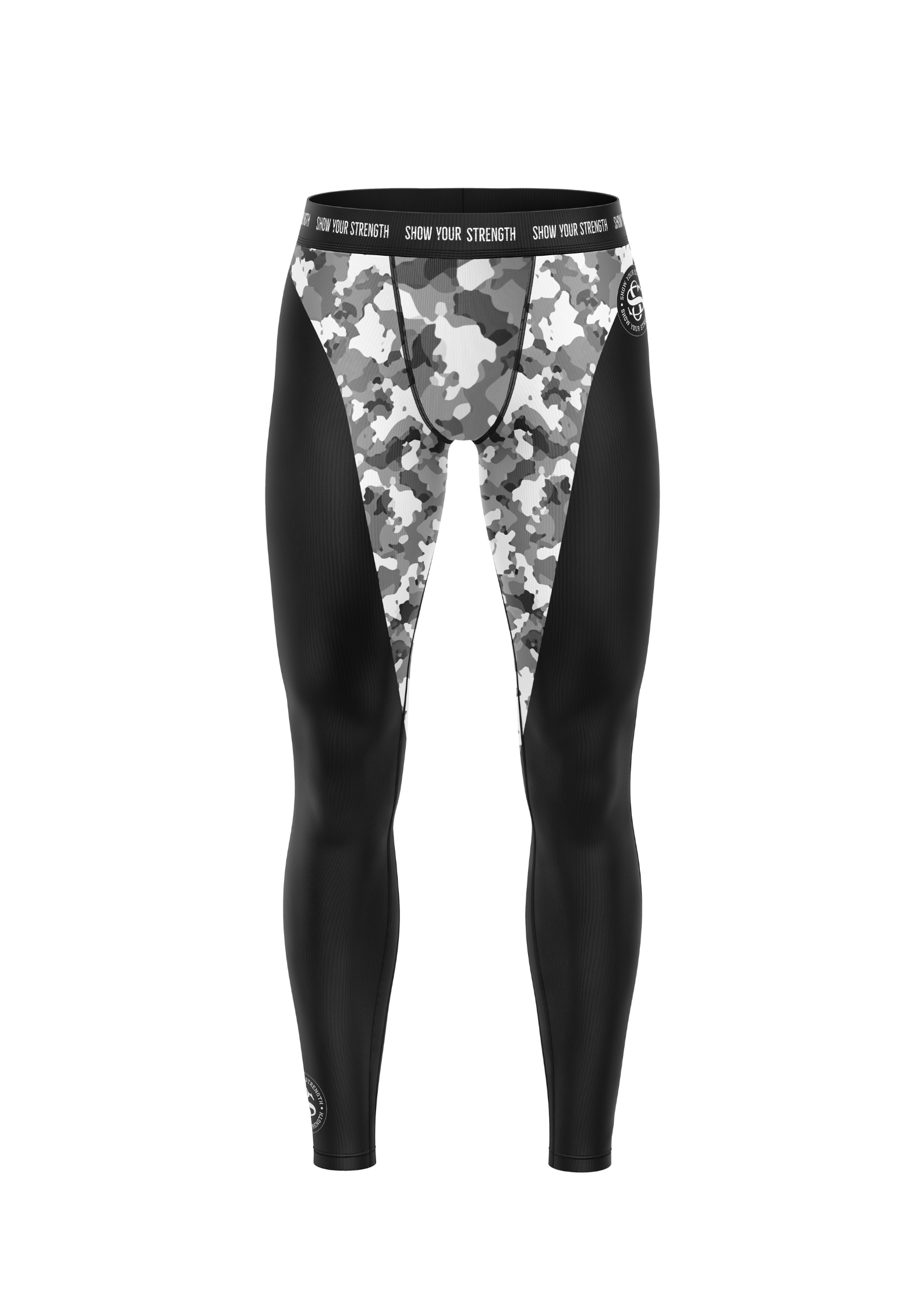 Kontrastowy wzór moro w odcieniach szarości nadaje nowoczesny, sportowy wygląd i łatwo dopasowuje się do pozostałej odzieży treningowej.