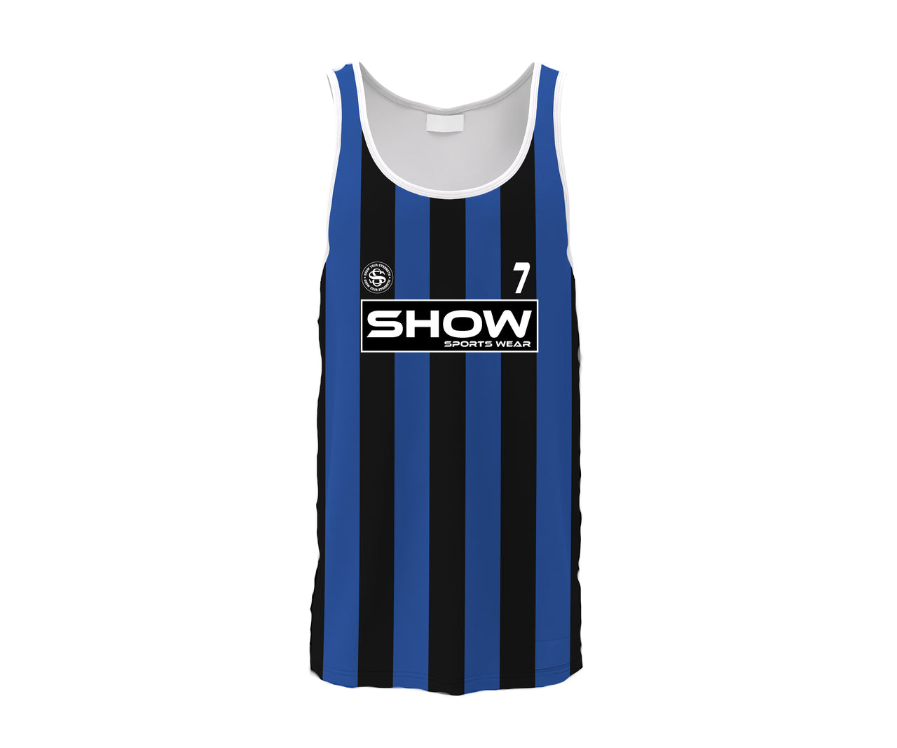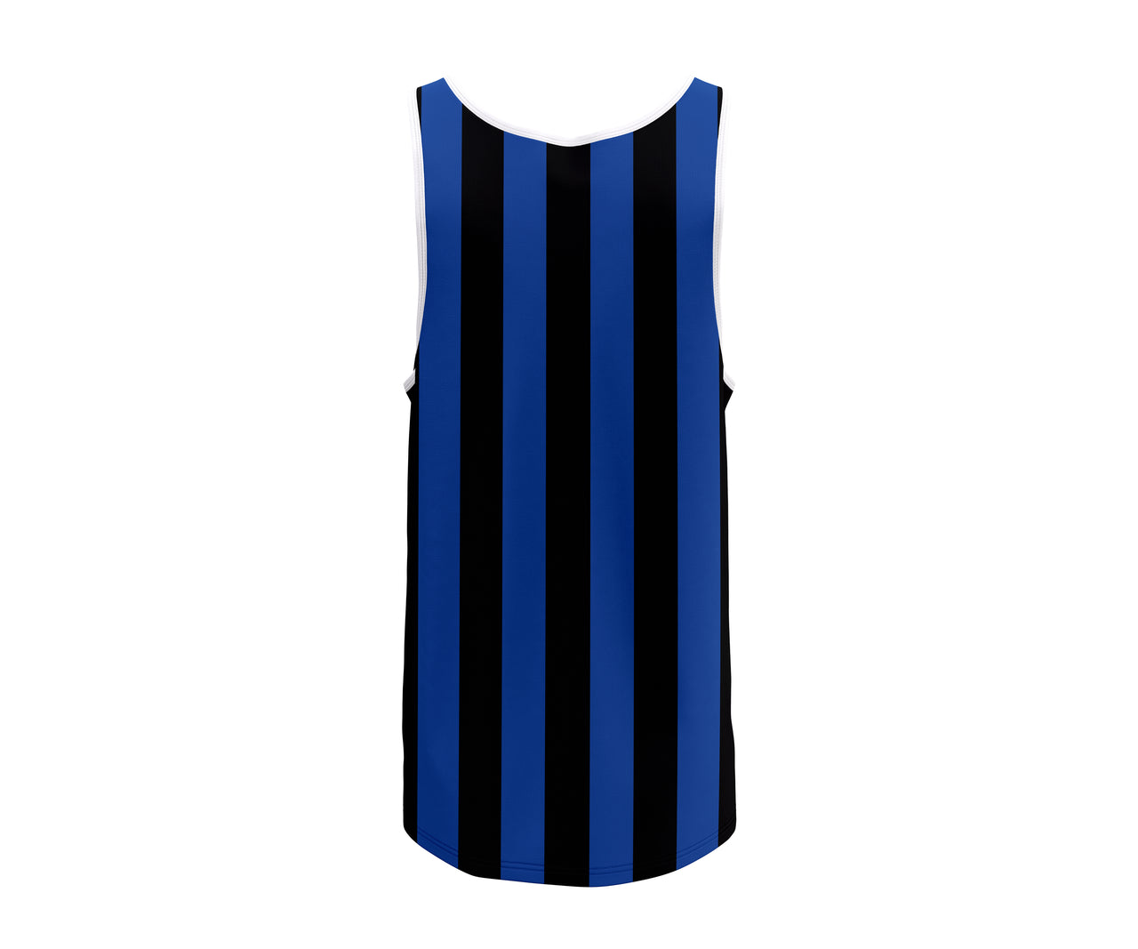 Klasyczne niebiesko-czarne pasy w dynamicznym układzie nadają sylwetce sportową moc i wyrazistość. Kontrastowe zestawienie kolorów przyciąga wzrok i podkreśla pewność siebie.