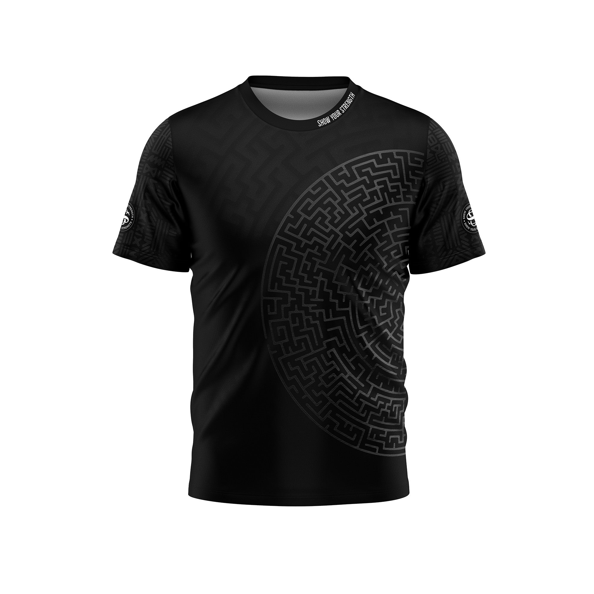 Minimalistyczny, czarny design z subtelnym, graficznym motywem nadaje koszulce nowoczesny, techniczny charakter i podkreśla profesjonalny styl sportowy.