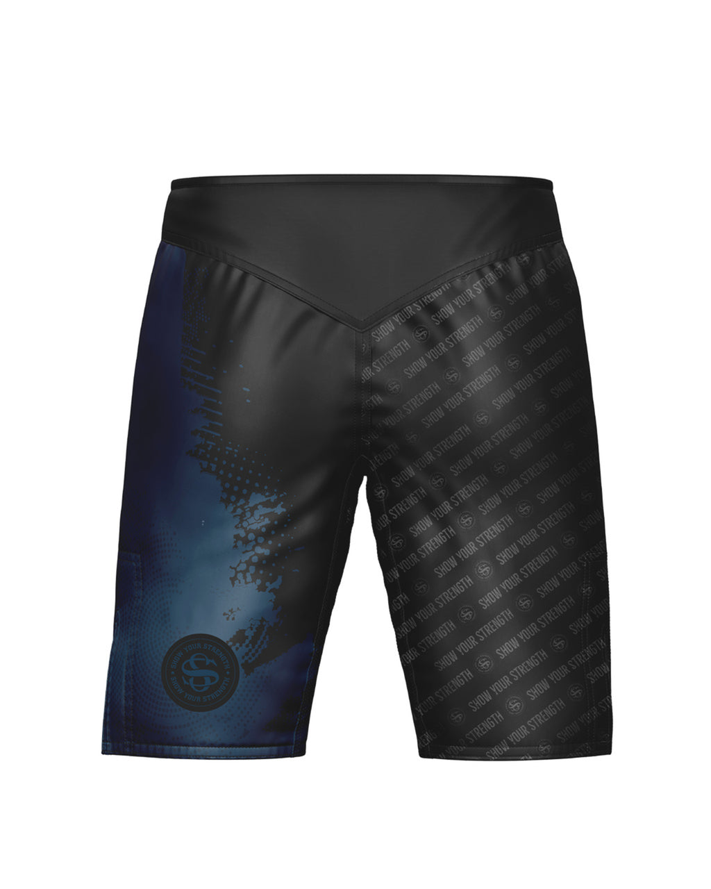 Te spodenki to połączenie bezkompromisowego stylu i funkcjonalności stworzonej do walki. Dynamiczny kontrast głębokiej czerni z granatowym akcentem podkreśla charakter zawodnika, który nie cofa się ani o krok. Grafika inspirowana ruchem, energią i determinacją mówi jedno: tu liczy się moc i wytrwałość.